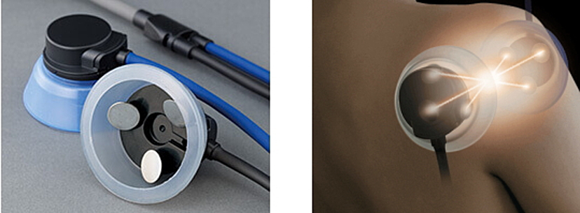 また、搬送周波数をスウィープさせることで表層部から深層部まで広範囲に治療が行えます。
