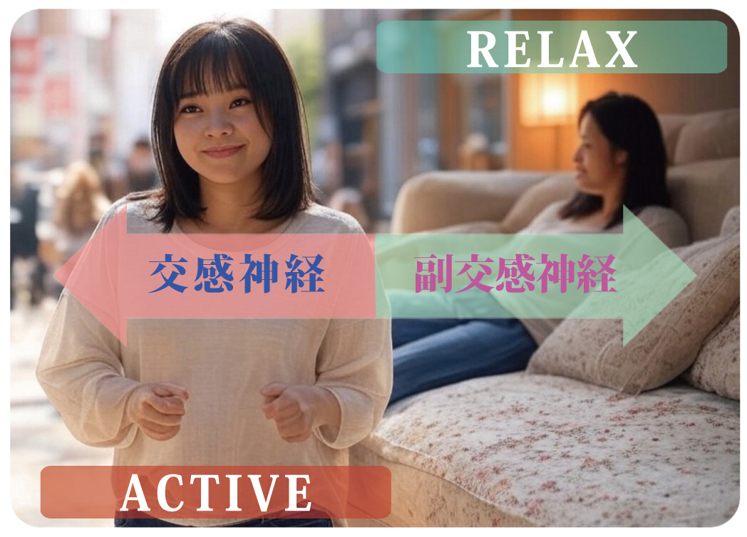 生活の中で、活動しているときは交感神経が優位になり、一方で安静にしているときは副交感神経が優位になります。